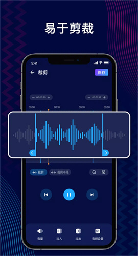 1、精准音频剪辑:该软件的音频剪辑功能达到专业级别,裁剪范围可精确到毫秒级,配合可视化音波图,能让用户清晰看到音频波形,精准定位裁剪位置。无论是裁剪音频首尾两端多余部分,还是截取中间特定区域,都能轻松完成,助力用户打造精准的音频片段。