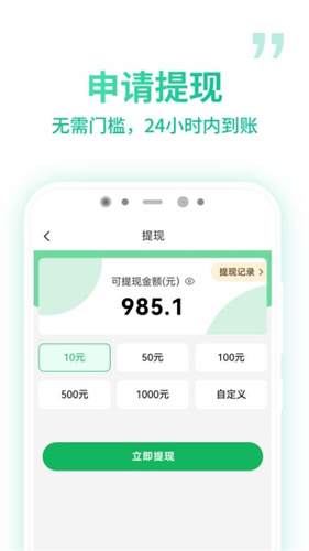 1、自动记录赚到的佣金福利,知道赚到的钱,并能直接在线申请提现,便于使用;