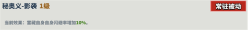 描述:雷藏自身闪避率增加10%。
