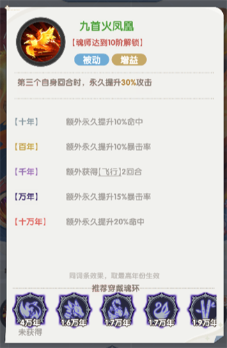 【十万年】进化为凤凰穿云击,攻击后额外附加1层【灼烧】2回合
