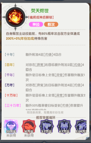 【三十万年】额外50%概率使目标受到【灼烧】伤害提升30%,持续2回合