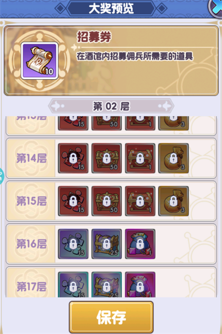 目前推荐:1-3层自选10考古镐、4-6传说藏品碎片随机箱、7-9传说藏品碎片自选箱、10-12神话藏品碎片随机箱、13-15神话藏品碎片自选箱、16-18创世藏品碎片随机箱、19-21密钥、22创世藏品碎片自选箱