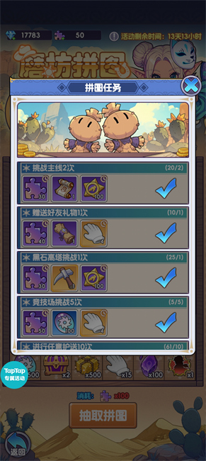 简单的每日任务,也是白手套的重要来源,一天做完能拿12个白手套。解锁所有拼图还能获得银狐时装(可爱捏,就是这立绘和小人真的是同一个人吗),每日任务不要忘记做就好