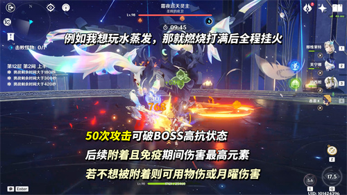 12-2上半,霜夜巡天灵主(425万血)。开局会进入「晦隐」状态,全抗大幅提升,需50次伤害破除。若期间受伤为物理或月曜反应则无事发生,若为其他元素或反应则会全程附着并免疫伤害最高元素。