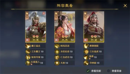 玩家在选择给大乔搭建阵容的时候,需要了解大乔作为核心的辅助。它能够集治疗和增伤的功能于一体。另外,在施展怒气技能的时候,还可以给整个队伍当中的男性提供30%的输出加成。所以说大乔的实力也是比较厉害的。在搭建阵容时,可以先形成东吴铁三角的阵容,不得不说这个阵容获取的成本特别的低,并且能够快速的成型。在开荒时期以及游戏中期的时候,玩家可以利用这个阵容来进行过渡。要说东吴铁三角,分别有大乔,孙策,孙坚。