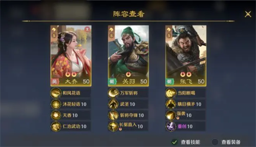 玩家需要注意,其实在给大乔搭配阵容的时候,还能够选择大乔跟关羽,张飞。进行搭配,在这个阵容当中,大乔还是作为辅助。其实,如果玩家在抽卡的时候直接获取了刘备,那么就在这个角色当中使用刘备,但是。玩家也可以直接使用关羽,再加上次日签到就能够获取的张飞。那么在这样的情况下,玩家此时就可以考虑直接组建一个桃园的平替队,在游戏前期的时候是比较好用,并且能够过渡的一个阵容,相信大部分玩家在使用的时候产生的效果也是比较好的。