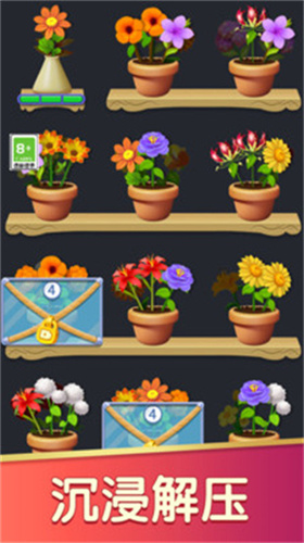 2)通过完成任务和挑战,逐渐解锁更多的花朵和花艺作品,展示自己的插花技巧和创造力。
