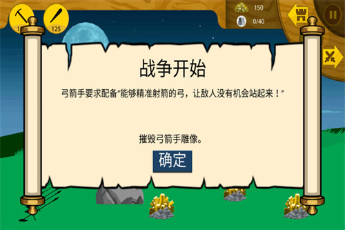 第三关:剑士关卡,前期养6个矿工,剑士来了就驻守,经济上来了优先养弓箭手(3个起步)
