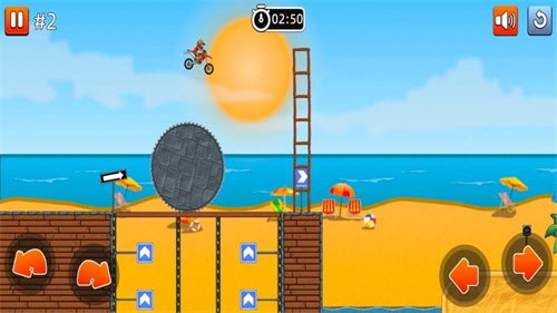 3、摩托飞跃注意调节方向和特技动作,完美展示精彩的特技可以完成各个任务领取丰富奖励,还能轻松满足各方面的目标。