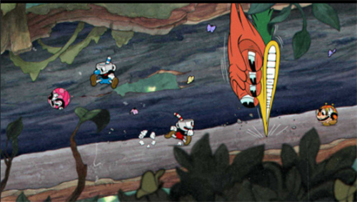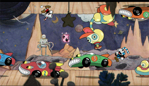1、复古动画风格呈现:游戏整体采用上世纪 30 年代经典动画片的艺术风格,角色与场景均通过手绘制作,线条流畅且色彩浓郁。从茶杯头的俏皮动作到 BOSS 的夸张造型,每一个画面都仿佛是从老动画中截取而来,搭配颗粒感的画面质感,完美还原了复古动画的独特韵味,给玩家带来强烈的视觉冲击。