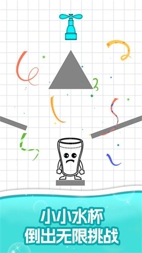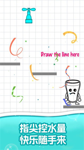 3、丰富多样的游戏关卡,拿起你的画笔,画出一条正确路线,为水珠引路到达杯子里面。