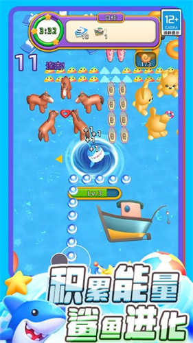 1、各种的不同鲨鱼还有更多的皮肤需要你去解锁,更快速的成长起来然后体积需要不断变大。