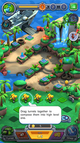2、经典的合成系统融入,简单合成即可获得高级炮塔。