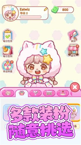 3、众多服装饰品挑选更换,所有服饰都会形成不同的主题风格和视觉效果,简单切换就能避免视觉疲劳。
