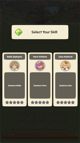 2、每个技能也会有攻击差异性,你需挑选适合的类型在战场上使用。