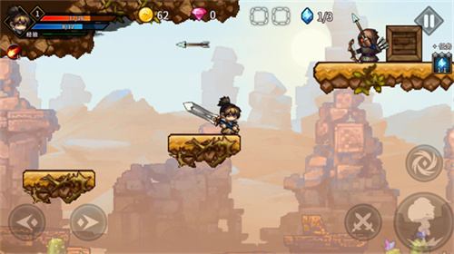 4、选好关卡后就会正式开始,正式开始后左边控制左右方向,右边是跳跃、普攻和技能按键。