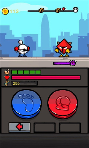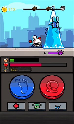 2、游戏的战斗过程较为简单,就两种攻击按键,这两种不同颜色的攻击按键,需要您根据遇到的不同病毒而进行选择,略微考验玩家的反应力,还有大量技能和招式解锁,爽快战斗。