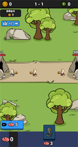 战斗力无敌啦游戏手机版去广告版是一款十分有趣的策略对战游戏。开局带着基础战力的鹅鹅站场,通过收集战场掉落的资源(比如左下角的肉块),就能解锁更强力的鹅型单位、升级武器;左右洞穴会刷新不同强度的敌人,你的目标是让鹅鹅的“战斗力滚雪球式暴涨”,从初期的小打小闹,一路碾压到“顺利通关”!