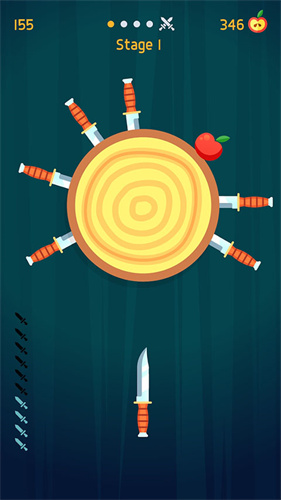 飞刀打击破解版内置菜单版是一款富有趣味性的飞刀射击游戏。游戏的画面设置的非常舒适,飞刀飞出去的音效也相当的解压,玩法上也很简单,类似于见缝插针的小游戏,只需要玩家瞅准时机,将手上的飞刀射出,保证飞刀与飞刀之间的间距。游戏为了玩家不会无聊,还在游戏中加入了苹果供玩家设计,还可以更换飞刀的样式和颜色,游戏到一定程度,玩家可以直接将飞镖靶直接粉碎。