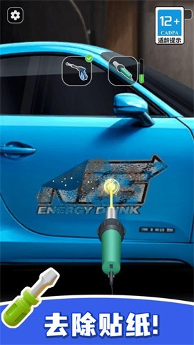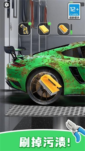 3、洗车操作简单点击完成,触碰不同的车辆区域就能完成清洗,这也能满足多方面的目标获取丰厚奖励。