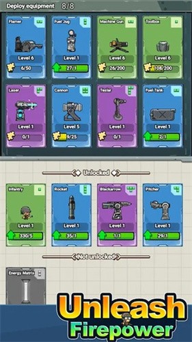 3、玩家们在中期的时候如果资源比较丰富的话,可以考虑使用重机枪,重炮虽然伤害很高,但是本身的攻速很一般。如果使用机枪的话虽然伤害低一些,但是高攻速可以弥补伤害不足的情况。