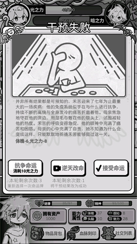 3、在某些重大事件中玩家可以对庇护人进行干预,但要小心会有干预失败的情况。